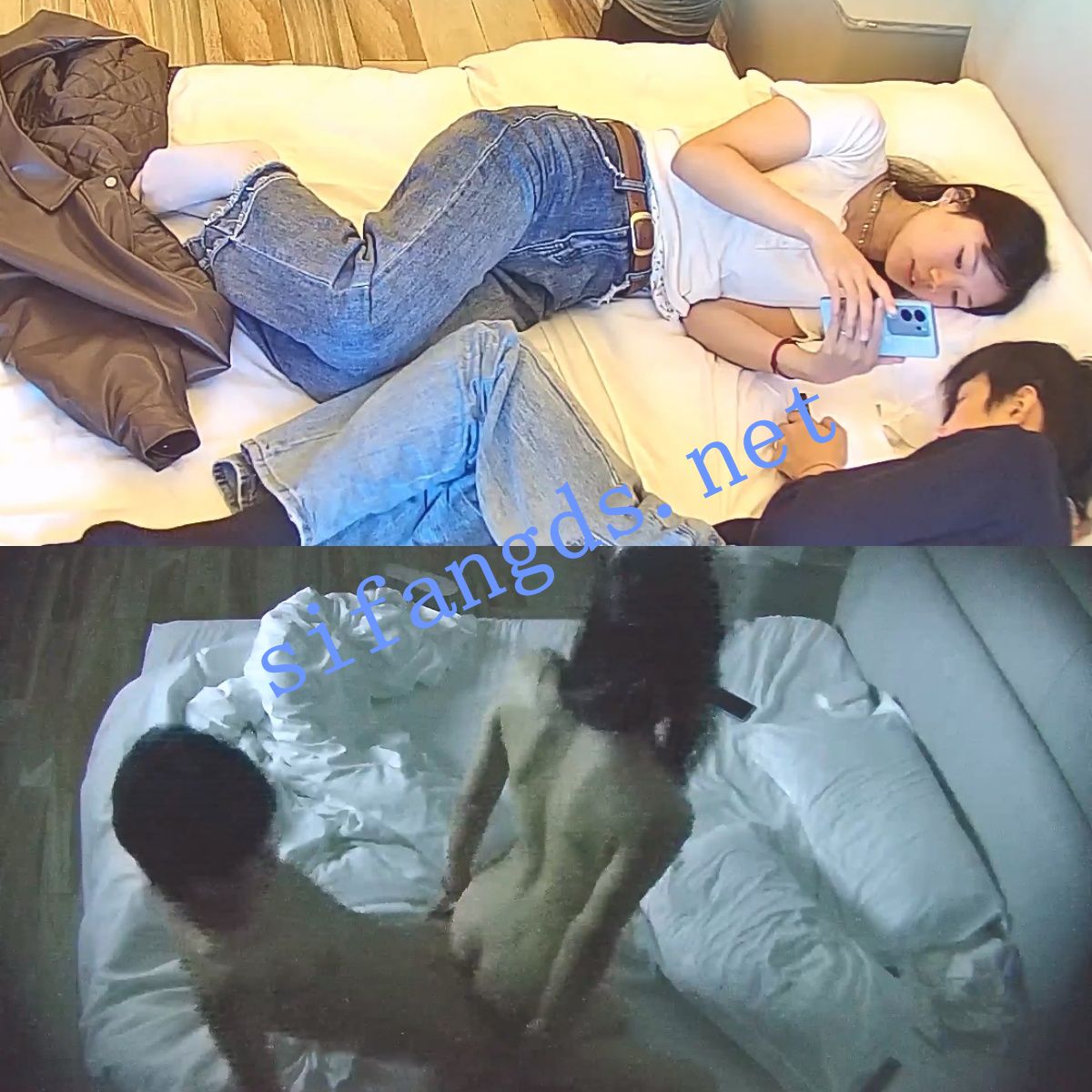 (Q19/ 20分)这小子更加过分。他又想操仙女,直接趴开她内裤,摸逼。臭鸡巴,这小子直接用旁边的矿泉水的水涂卫生纸上面,往鸡巴上面擦了两次直接往仙女穴里插(太不讲究了,也不怕把仙女下面搞发炎)。也不洗洗自己的臭鸡巴。操着操着还把仙女抱起来操,后面淫水泛滥没办法,女上位一屁股坐他臭屌上面了,仙女做爱很生涩,看得出来没有性爱经验,便宜他了