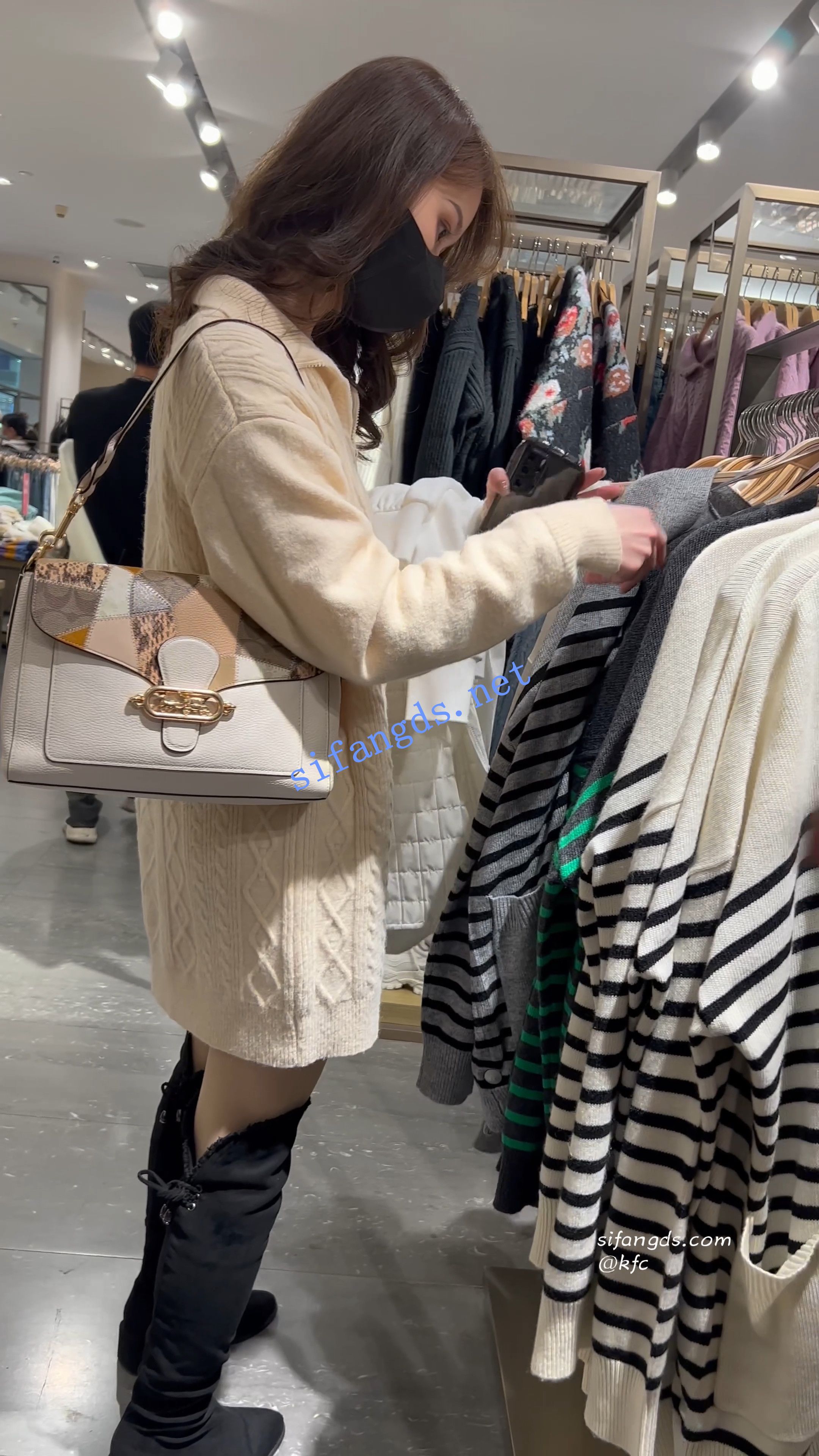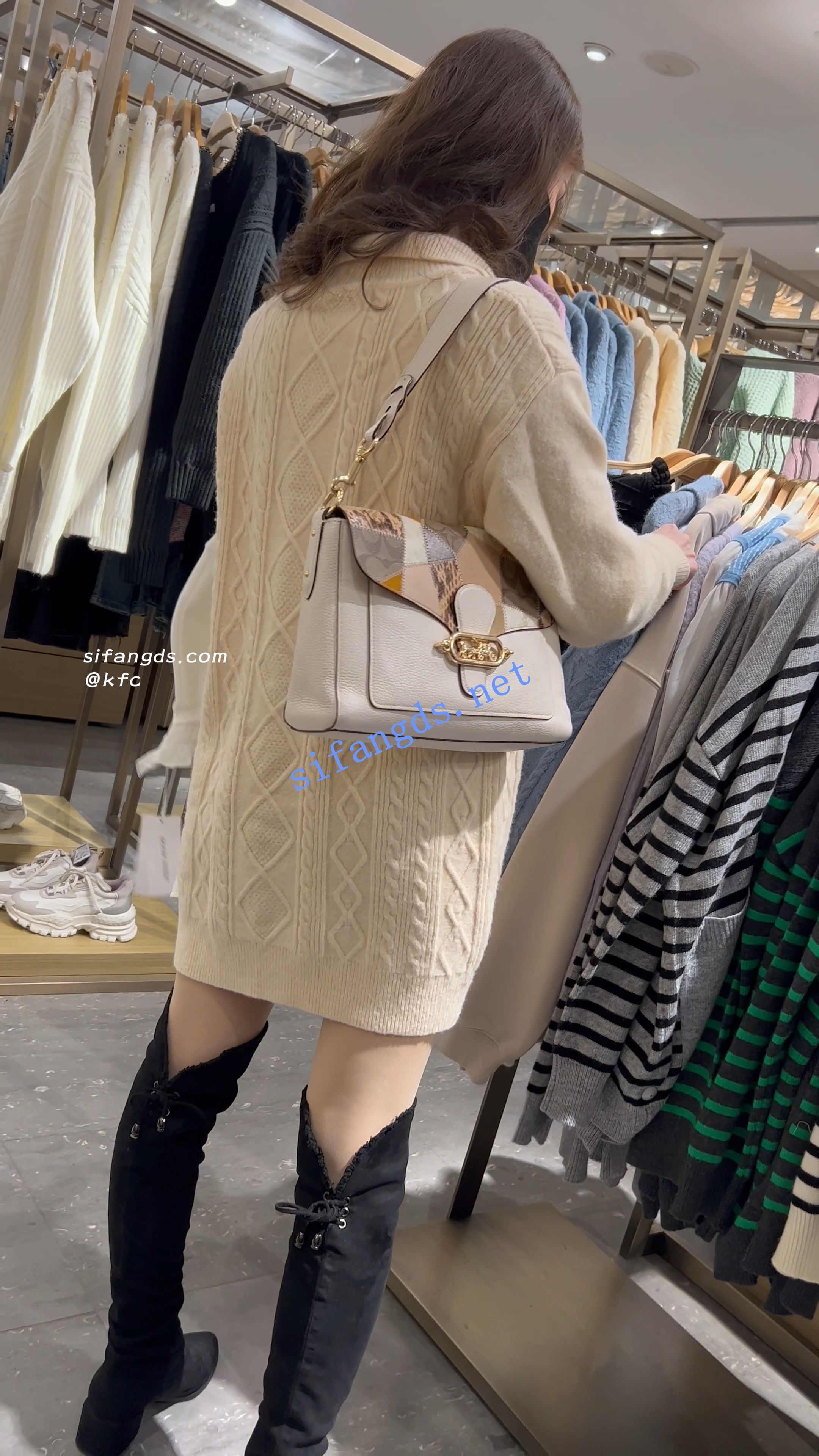 【KFC】长裙靓女挂逛街买衣服·肉色丝袜骚内·低角度跨过相机