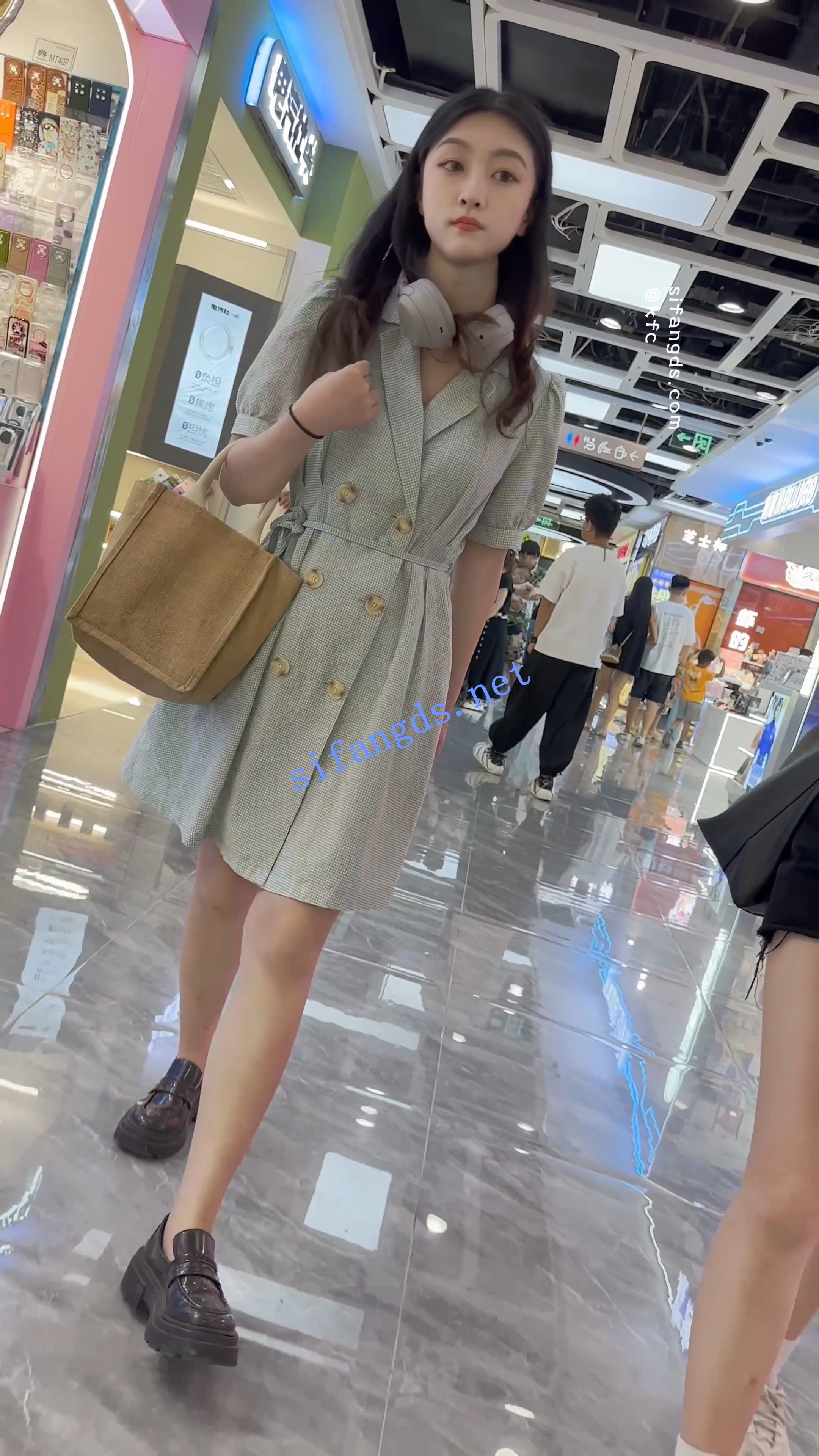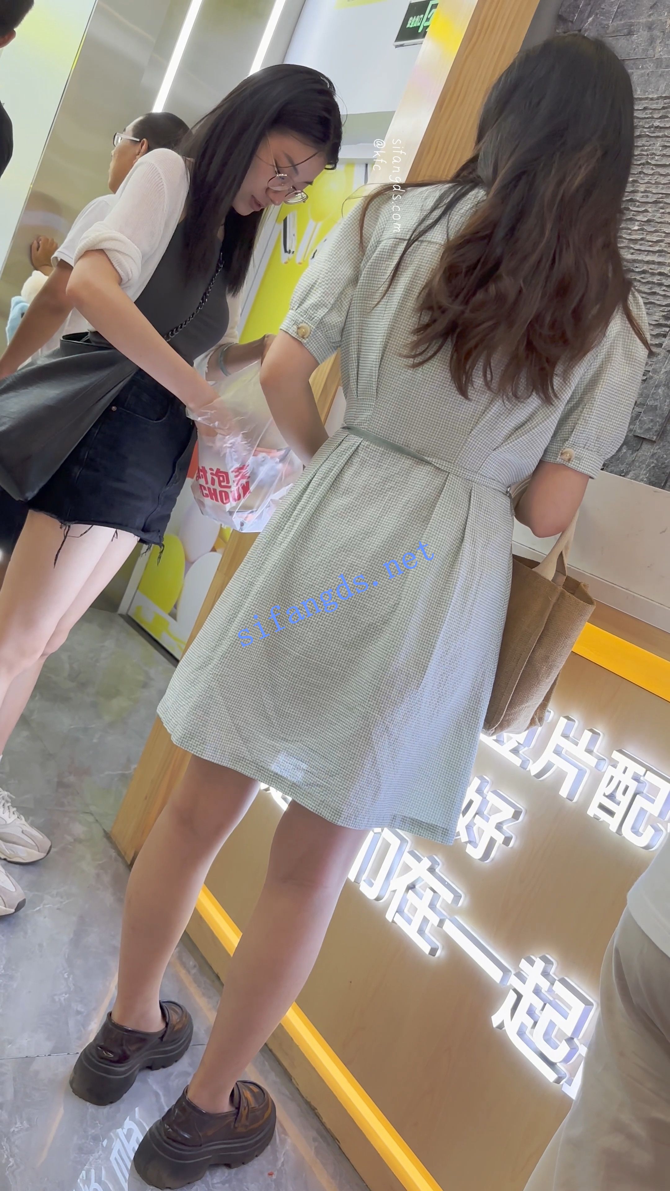 【KFC】长裙靓女挂逛街买衣服·肉色丝袜骚内·低角度跨过相机
