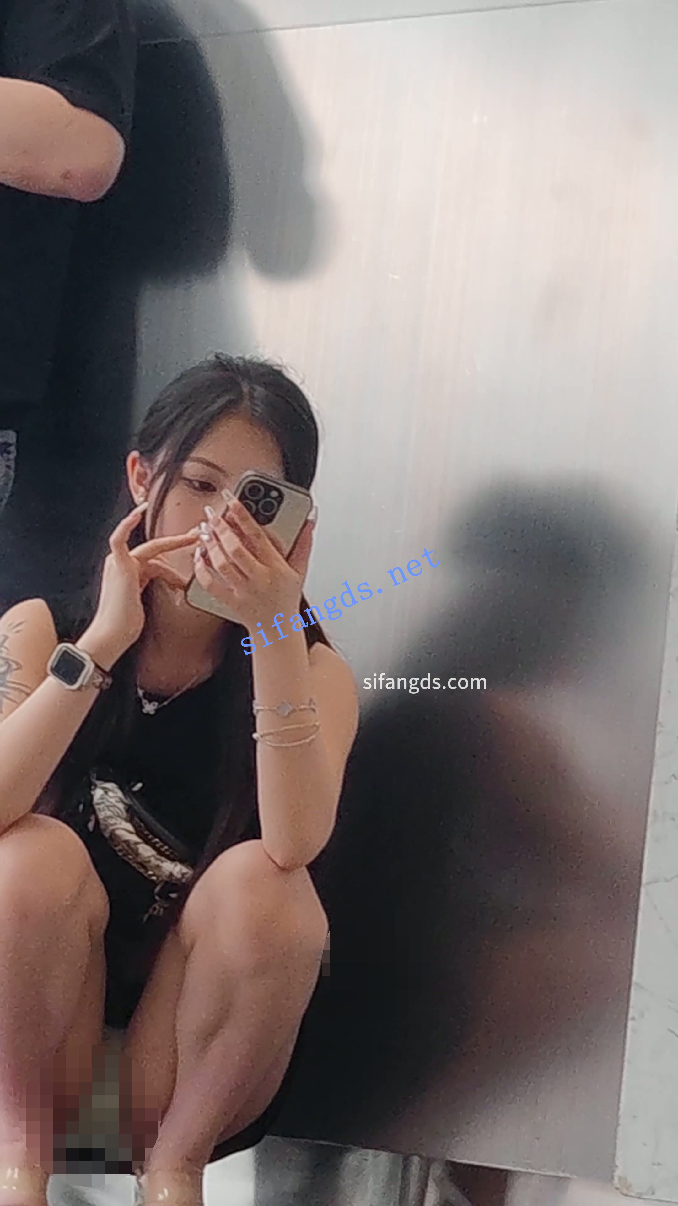 【CSCD】黑色连衣裙极品美女累了蹲着休息,屁股半透明内
