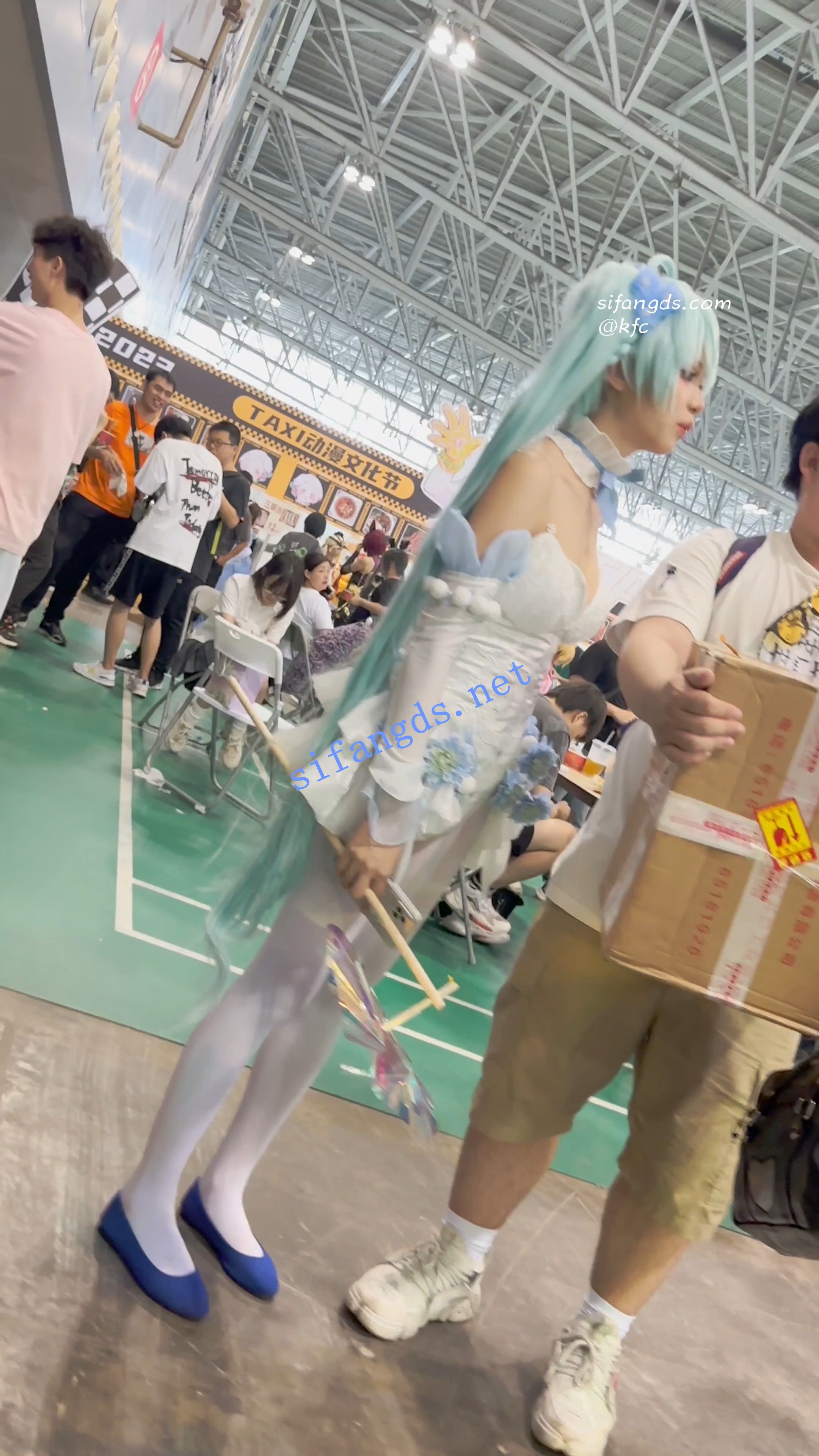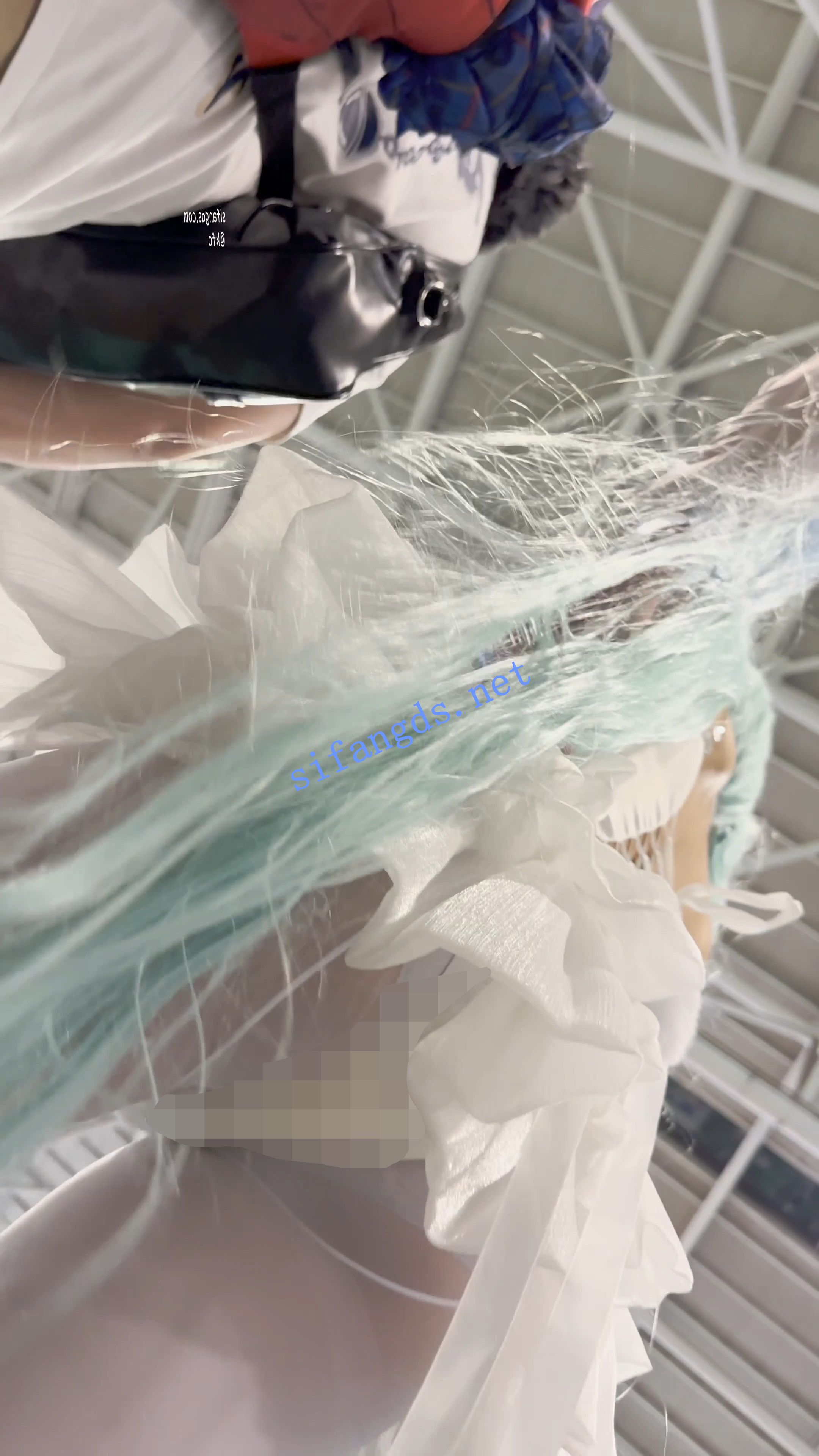 【KFC】泳装COSER和男友逛街·白色内内被泳装兜住露两边