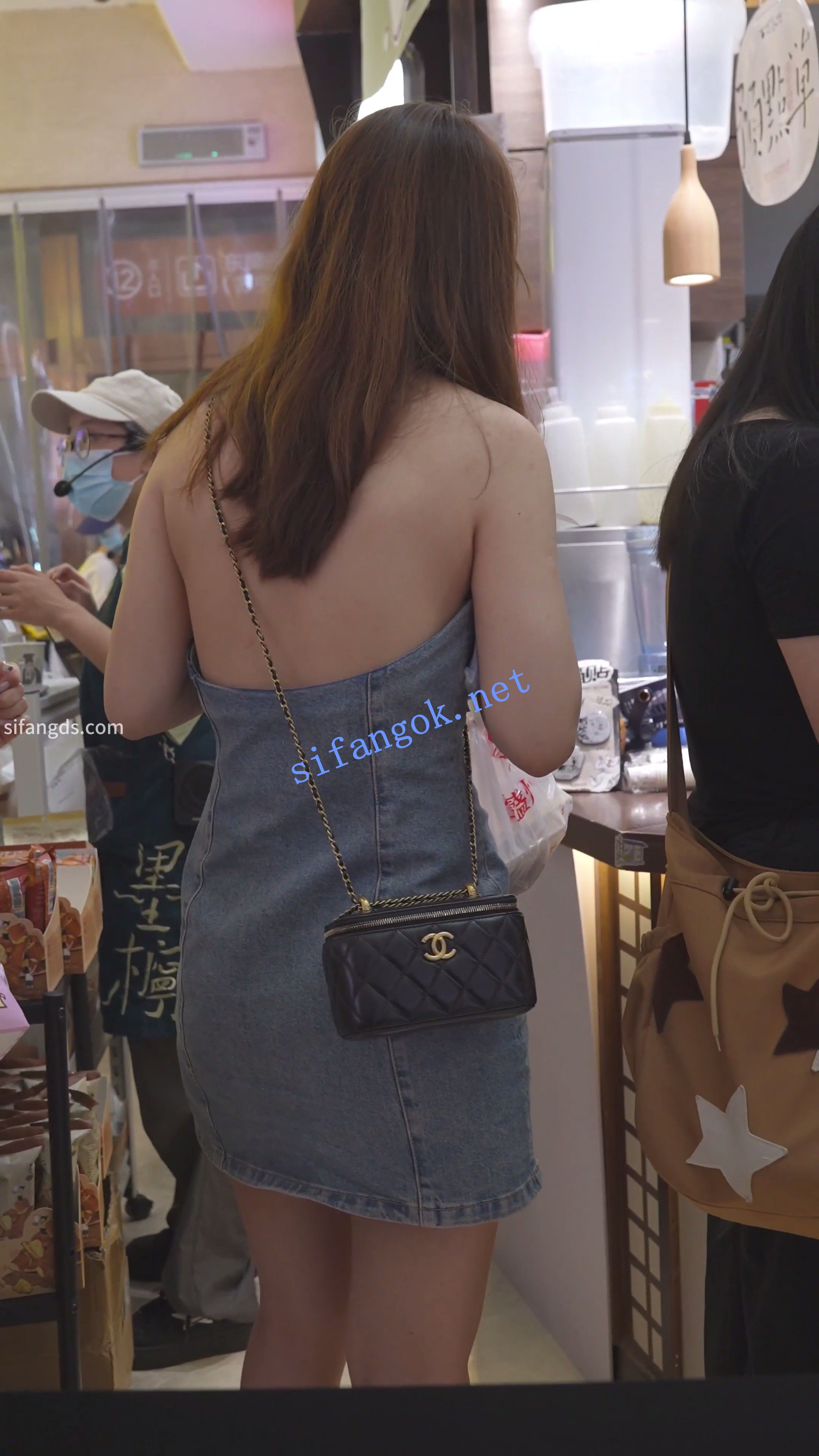 露背牛仔裙少妇逛街,排队被前后CD,骚窄内夹成丁,两侧露毛连在一起,少妇就是骚。。